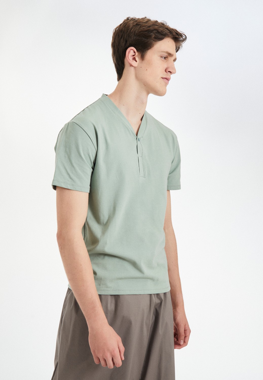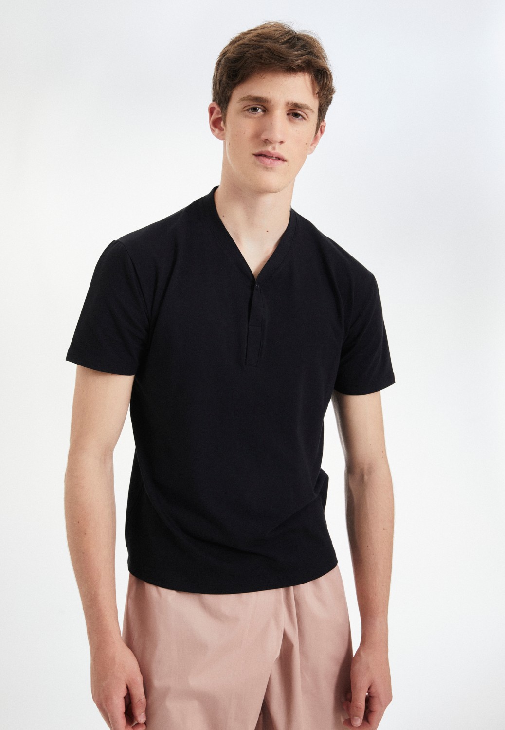 BCN Herren T-Shirt Stretch V-Ausschnitt mit Knopf kurzarm