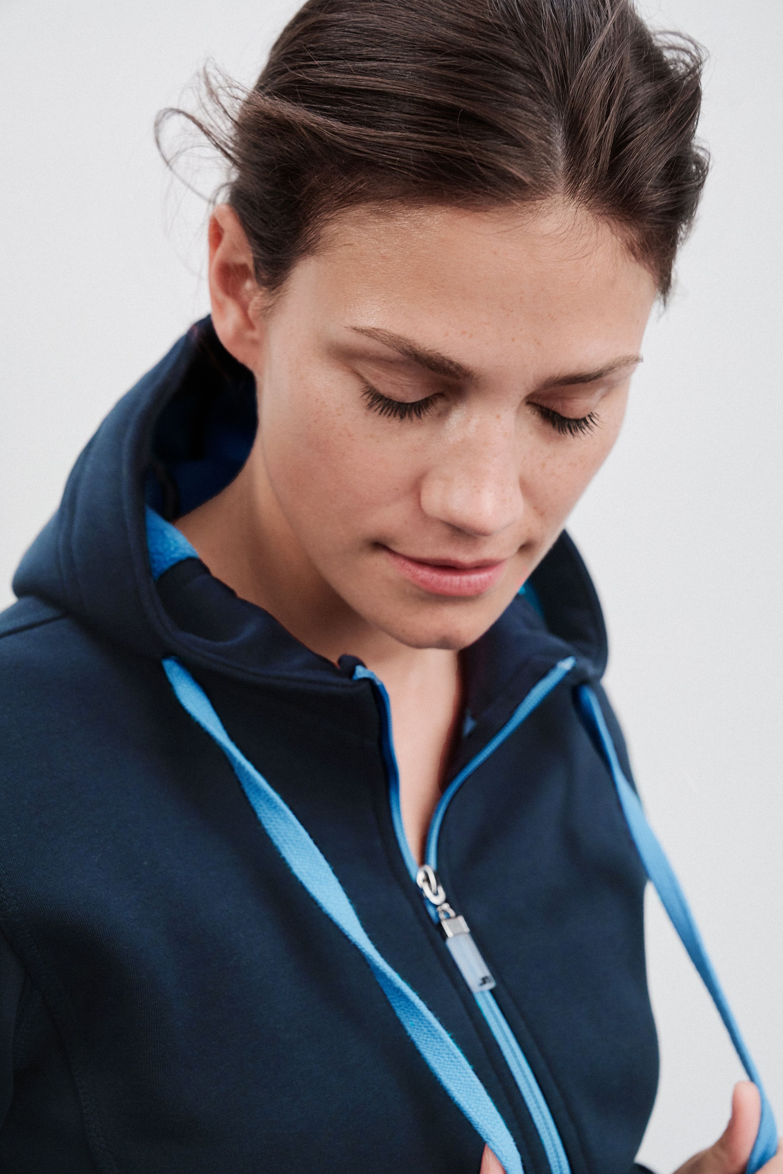 - Full-Zip, Kordel und Innenseite in Kontrastfarbe