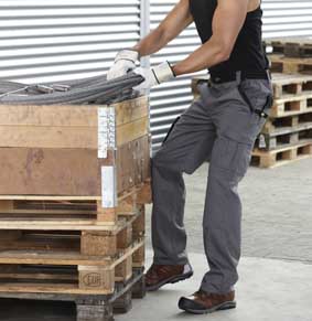 Damen Cargo Hose - Arbeitshose Leichte, modern geschnittene Damen Arbeitshose zwei Beintaschen und Gesäßtaschen mit Klappe Rot-35, Hellblau-53, Flaschengrün-66 haben Kontraste in Schwarz Größen: C42-C64 durch Aufreißen der roten Nähte am Saum kann die Hose um 5 cm verlängert werden.