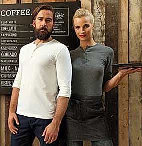 Herren Stretch V-Neck T-Shirt mit Knopf für Service , Wellness und Care 94% Baumwolle, 6% ElasthanModisch geschnittenes Shirt aus leichtem Jersey-Stoff V - Ausschnitt mit Knopfkurze Ärmel Pflegehinweis bei 30 °C waschbar Bügeln erlaubt Farben: schwarz, ecru/weiß, hell olive, stone Größen: S-XL (46-60)