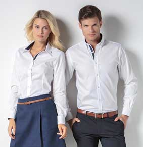 Business Oxford Bluse langarm Abnäher vorn und hinten für feminine Passform klassicher Hemdkragen abgerundete Manschetten mit 2 Knöpfen abgerundeter Saum, vorne etwas länger auch in Kurzarm Art. J933F u. für Herren Art. J932M verfügbare Größen XS - 6XL