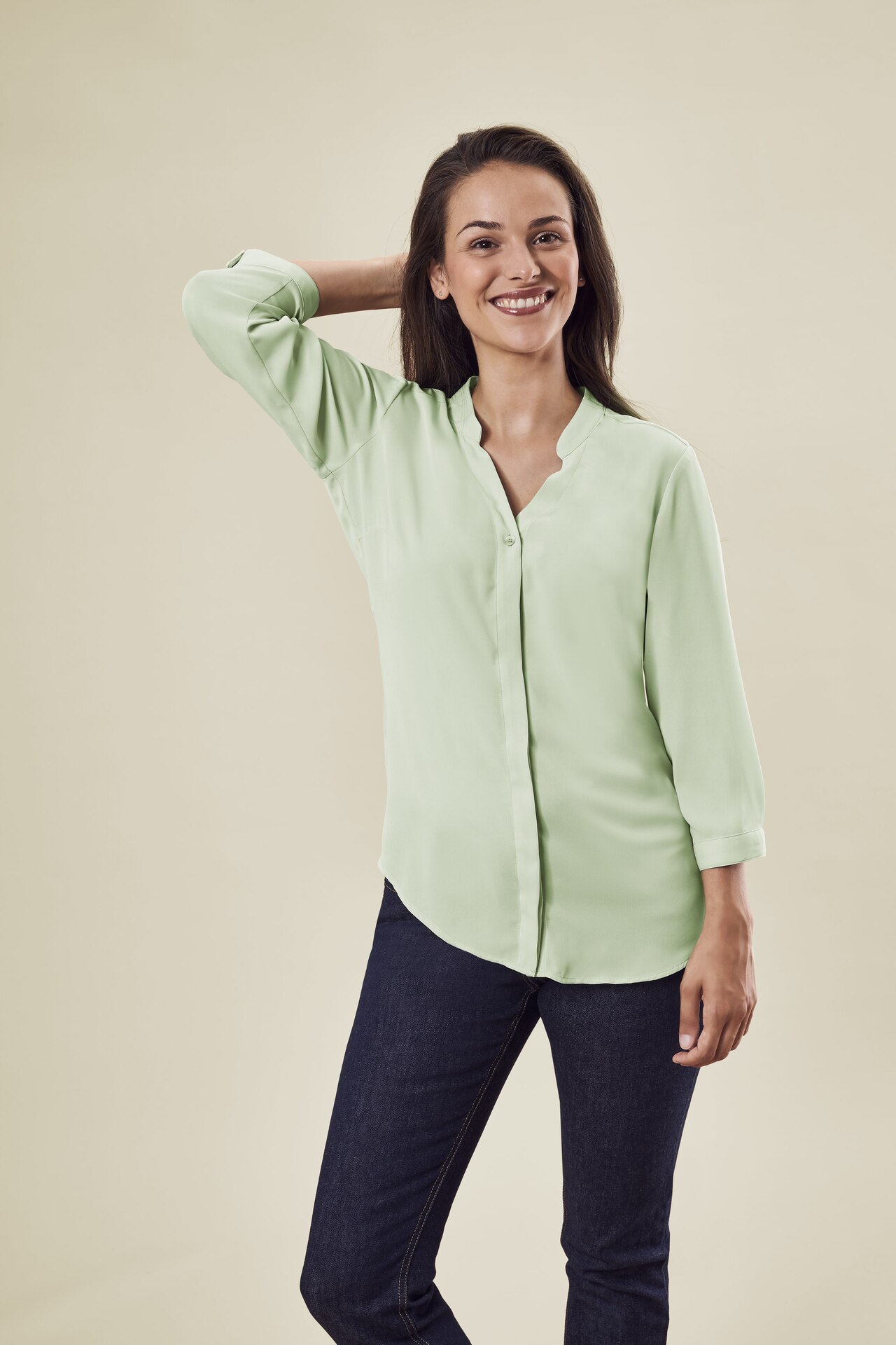 GRE Chiffon Bluse mit Stehkragen V-Ausschnitt 3/4 Arm