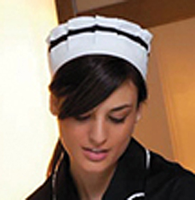 - Kragen und Ärmel mit weisser Spitze abgesetzt