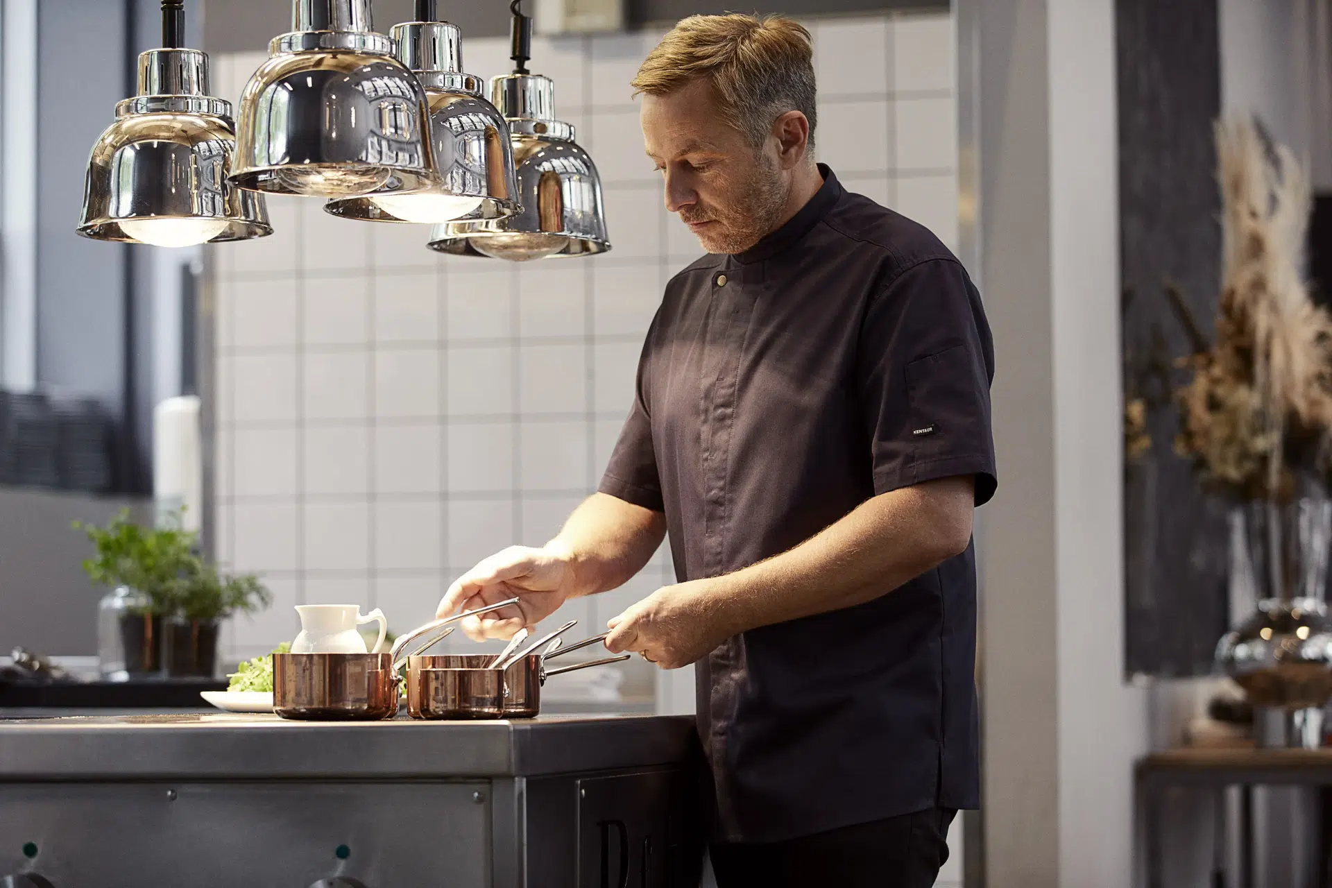 - Eine Mischung aus klassischer Kochjacke und modernem Kochhemd