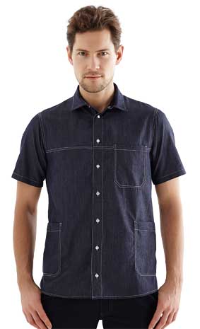 Unisex Hemd kurzarm für Pflege und Housekeeping blue denim